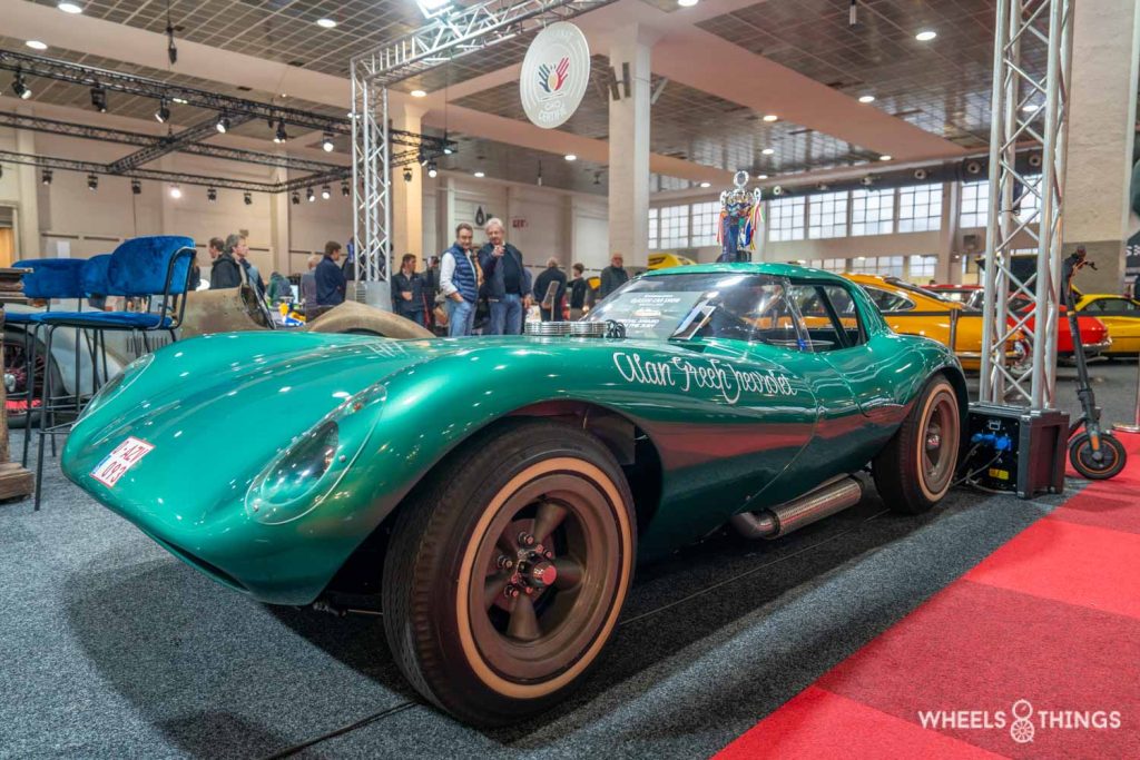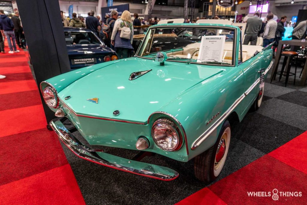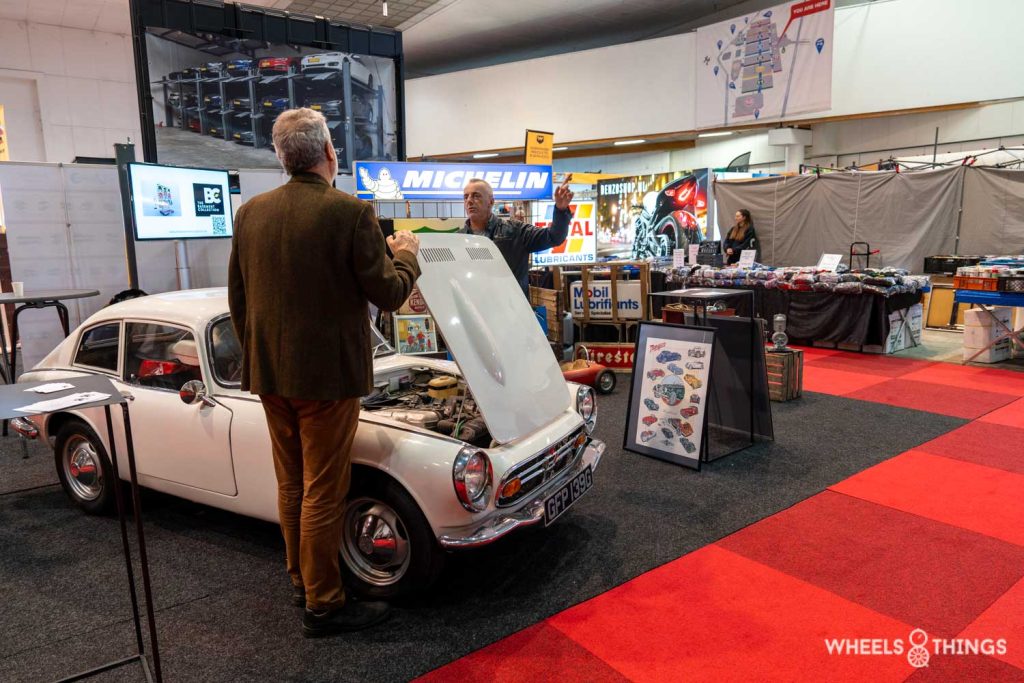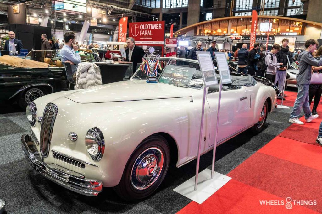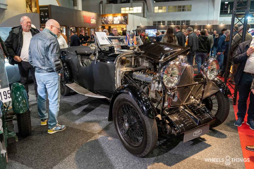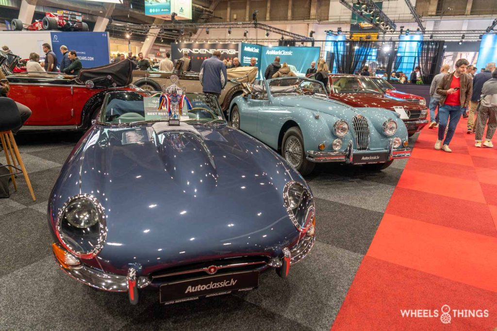 Hieronder zie je de Jaguar E-Type op de stand van AnMark Classic die de titel van beste restauratie in ontvangst mocht nemen. De auto zag er nu wellicht mooier uit dan toen hij ooit de Jaguar fabriek verliet.