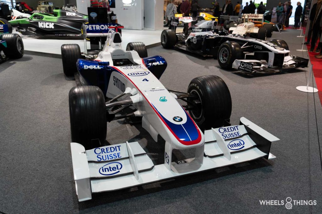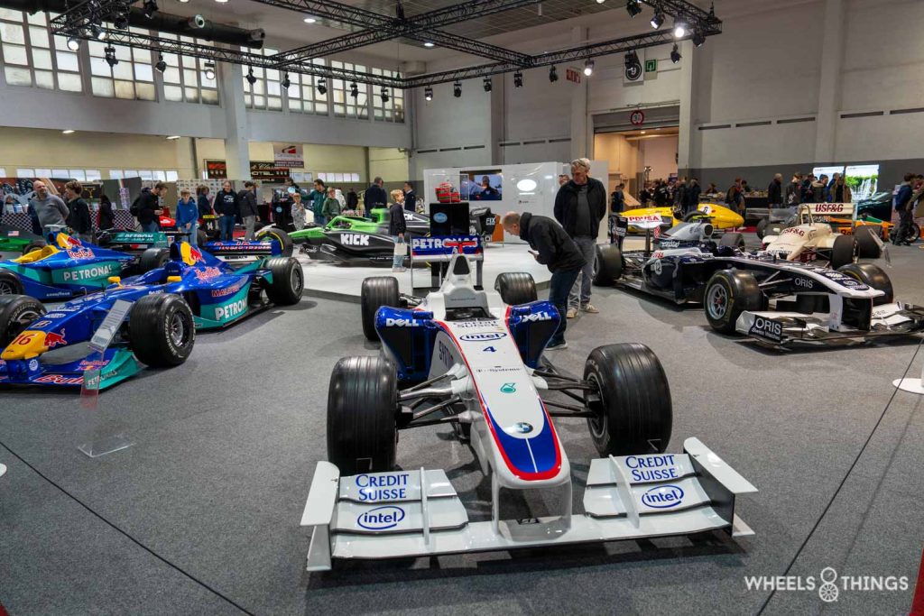 Op de stand van Officina Caira konden de F1 liefhebbers hun hartje ophalen. Zelden zagen we zo een groot en mooi aanbod F1 auto’s tijdens een classiccar event zoals Interclassics. Hierboven zien we de BMW Sauber F1.08 die in 2008 is bestuurd door het team Nick HEIDFELD / Robert KUBICA. Beiden haalden ze een tweede plaats in 2008, eens in Melbourne en eens in Maleisië.