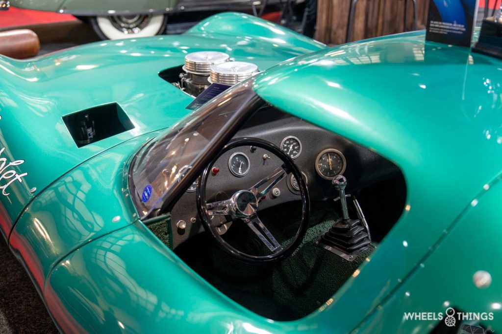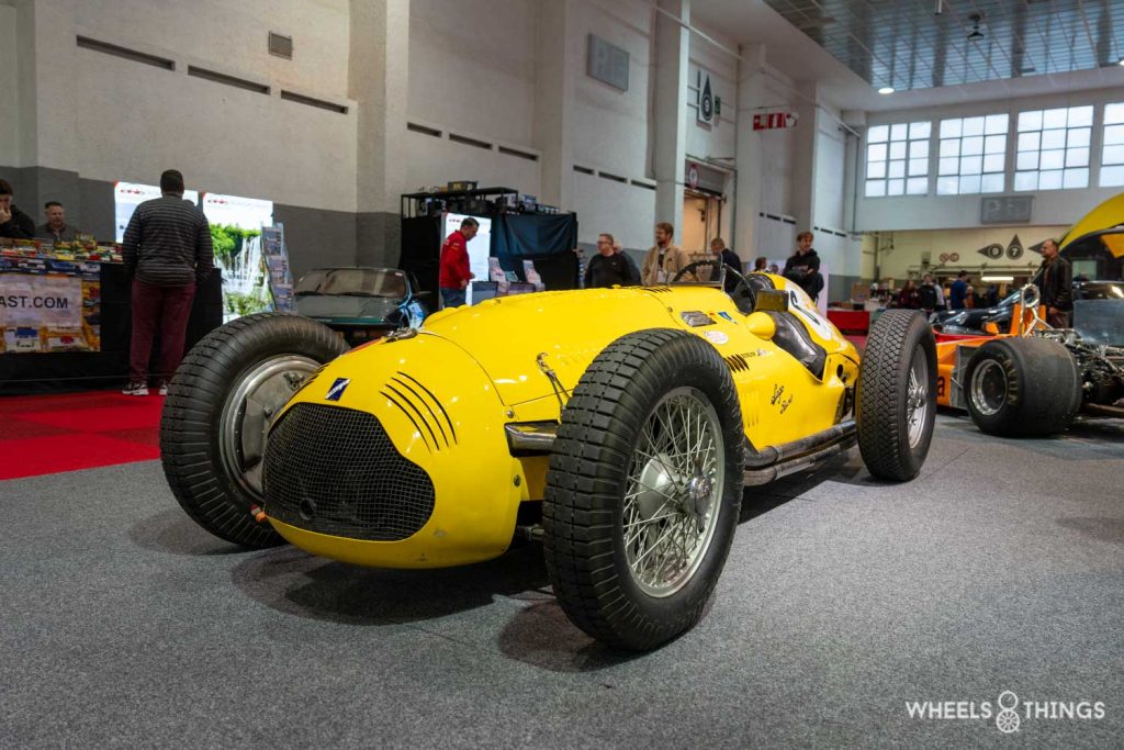 Hierboven zien we de prachtig gekleurde Talbot Lago T26C. Een monoposto (Formule 1) Grand Prix-racewagen met een 4.5L 6-cilinder motor die 260 pk levert. Oorspronkelijk een works racecar, ingezet door coureurs zoals Martin, Chaboud, Rosier en Trintignant in 1952.