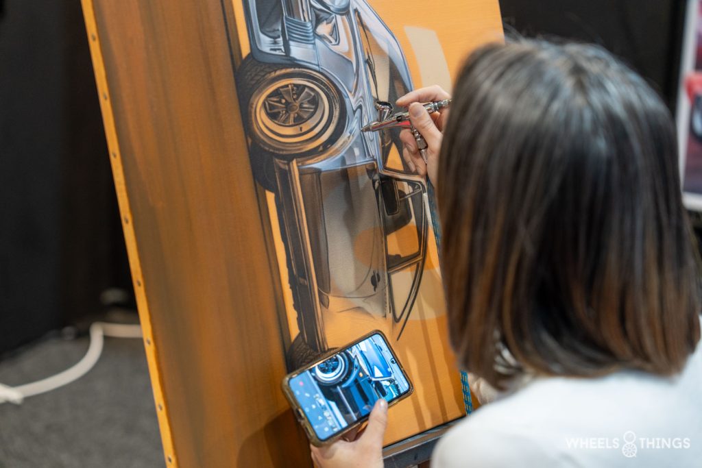 Opvalland veel kunst dit jaar, het ging van schilderijen over airbrush naar fotografie en beeldhouwkunst. Hierboven zie je Schilderij van Hes aan het werk. Ze werkt meestal in opdracht dus als jij je klassieker wil laten vereeuwigen op doek ben je bij haar aan het juiste adres.