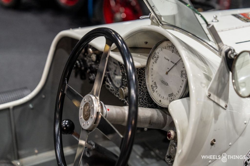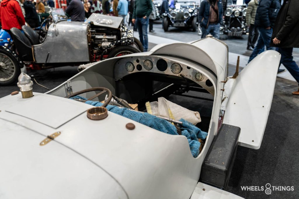 We staan even stil bij deze Alvis Silver Eagle Sport Special uit 1934. We zien deze Alvis op de stand van het Duitse Kranz Oltimer Service. De auto is in de jaren negentig omgebouwd door Alvis specialist Chris Compton tot de huidige racewagen. Na enkele keren van eigenaar te zijn gewisseld is hij in 2009 in handen gekomen van de huidige eigenaar die hem in 2023 vanaf de grond opnieuw liet restaureren.