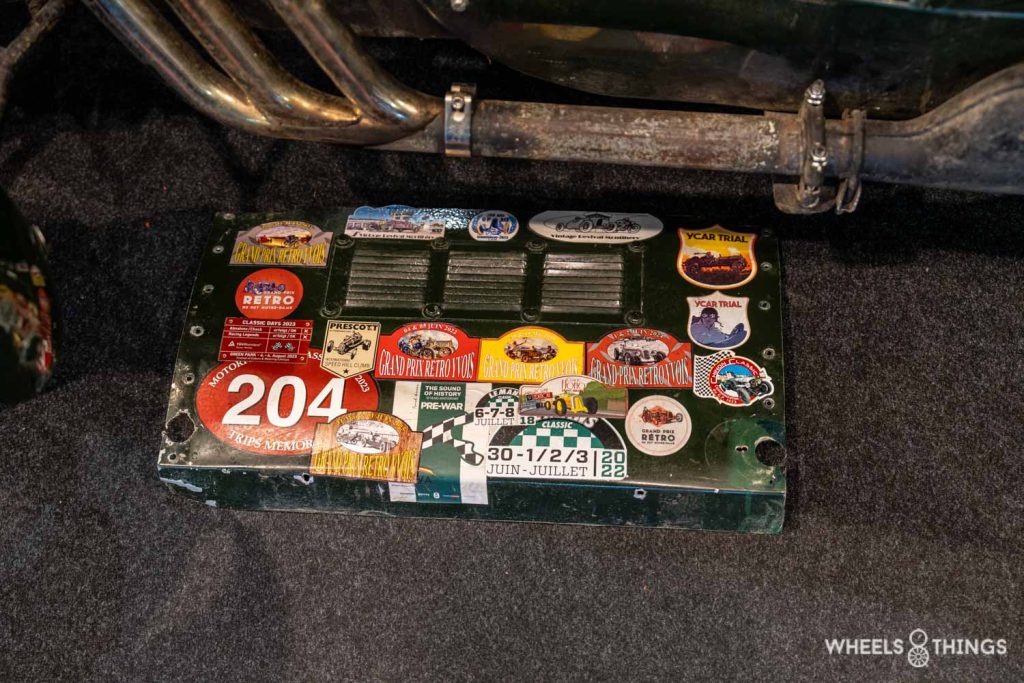 Deze auto’s hebben soms van die kleine detail’s zoals dit plaatje dat verwijst naar het roemrijke verlden van de Singer Nine die in 1934 deelnam aan de ‘Grand Prix d’Endurance’ en daar 2203 kilometer aflegde.
