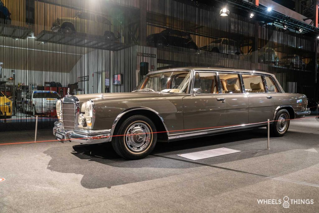 De Mercedes-Benz 600 Pullman was een hele verschijning want met een lengte van 6,24 meter passeer je niet onopgemerkt. Van de Pullman zijn er over een periode van 1964 tot 1981 toch 487 gebouwd. Quasi allemaal maatwerk. Niettegenstaande de imposante afmetingen bleef het gewicht beperkt tot 1650 kg. Dankzij de V8 met een cilinderinhoud van 6332cc was dit toch een snelle auto voor die tijd. Het exemplaar hierboven heeft dienst gedaan bij het Belgische Hof en is gekend onder zijn bijnaam ‘King Boudouin’.