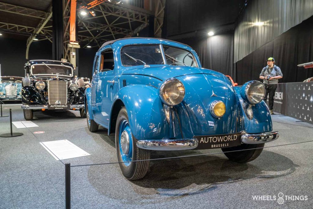Het gebeurt niet zo dikwijls dat ik een auto nooit eerder heb gezien. Deze Mercedes-Benz 170 H is er zo eentje. De 130 H is in 1935 getoond als een auto voor de massa. Met zijn achterin geplaatst motor volgde Mercedes-Benz de trend die heerste onder een groep ambitieuze auto-ontwerpers. De auto sloeg niet echt aan en er volgde een krachtigere 170 H en ook nog een 170 V. De letters H en V staan voor de positie van de motor. De H staat voor Heckmotor, dus achteraan en de V staat dan voor Vorne.