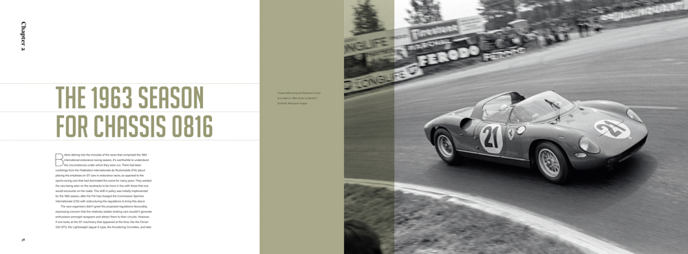 In 1963, Ferrari introduced its first car with a mid-rear V12 engine, the 250 P sports racing car. Four examples of the 250 P were built for the 1963 season, including the car discussed in this book, chassis 0816.